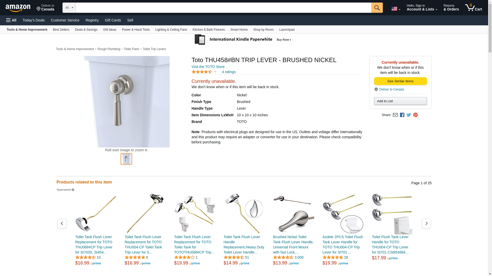 THU458#BN TRIP LEVER - BRUSHED NICKEL from TOTO USA