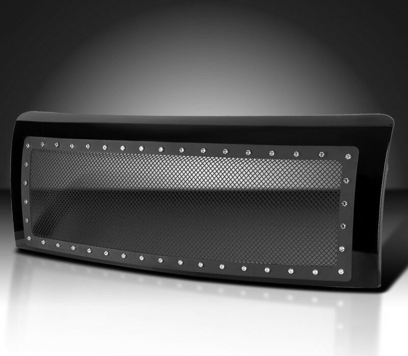 Spec-D Glossy Black ABS Rivet Style Grille w/ Stainless Steel Mesh Ford F-150 2009-2014 | HG-F15009JMSS-HJ