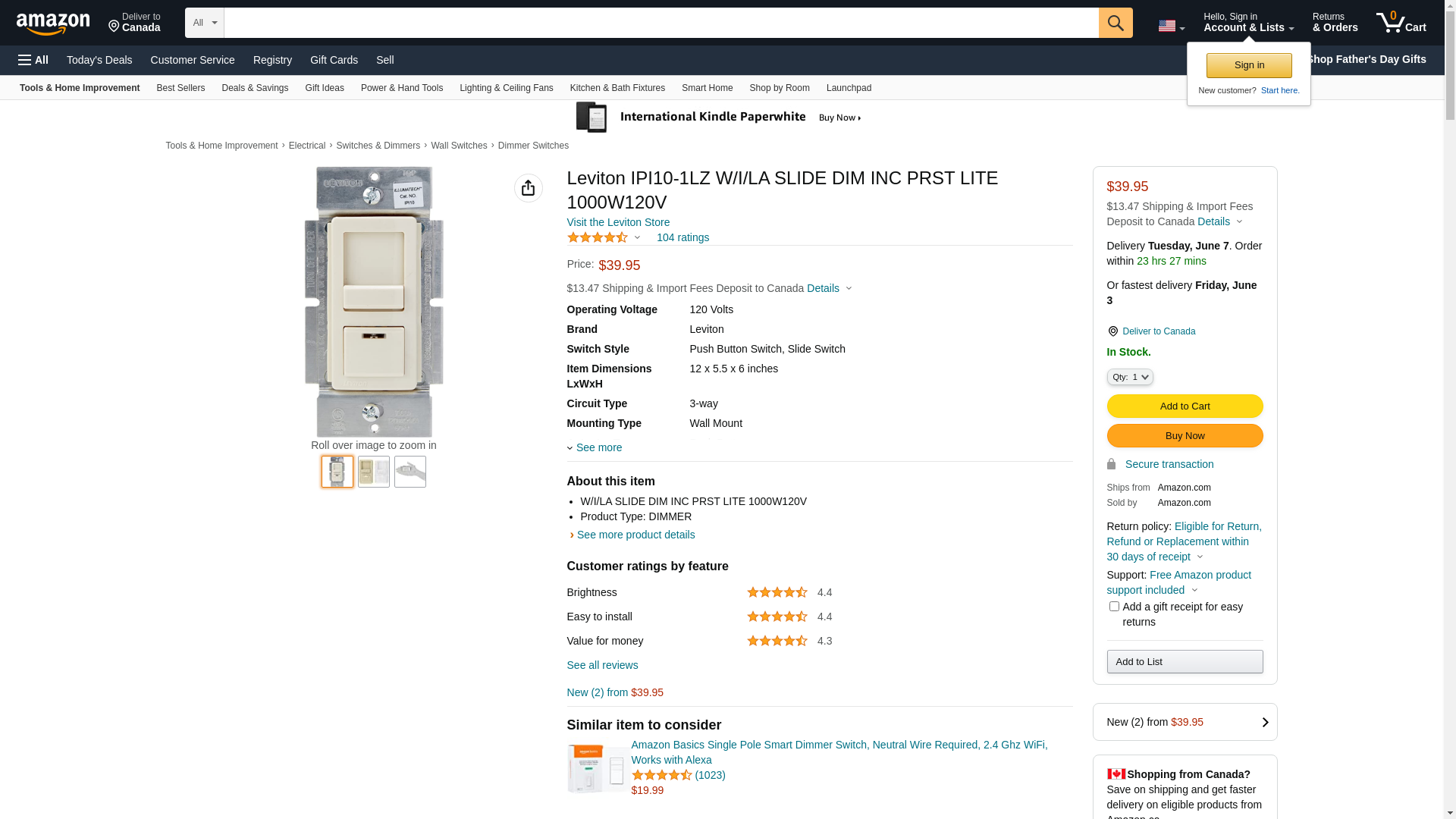 Leviton IPI10-1LZ 1000W, 120 Volt AC 60Hz, Singl