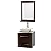 Wyndham Collection Centra 24 inch Single Bathroom Vanity in Espresso, White Man-Made Stone Countertop, Pyra Bone Porcelain Sink, and 24 inch Mirror