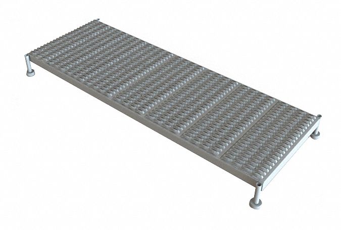 Single Step Platform, Material Steel, Platform Style Quad Access, Platform Height 9 in to 14 in, Load Capacity 800 lb, Base Depth 71 in, Bottom Width 24 in, Platform Depth 71 in, Platform Width 24 in, Overall Height 1 ft 2 in, Number of Guard Rails 0, Number of Legs 6, Number of Steps 1, Step Width 24 in, Step Depth 71 in, Step Tread Serrated, Color Gray, Finish Powder Coated, Standards OSHA and ANSI, Manufacturers Warranty Length 1 yr, Handrails Included No