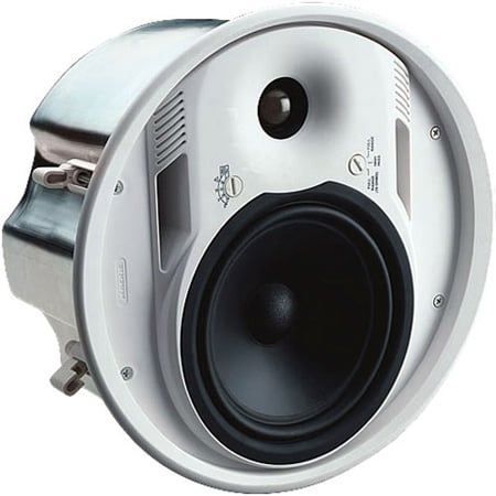 The EAW CIS400 (40-watt, 6.5-inch LF driver) compact two-way flush-mount ceiling loudspeaker employs a modified HF waveguide that integrates the HF driver with the LF driver, which is optimized for smooth frequency response and seamless transition through the crossover point.</p><p>A welded tab is provided for seismic restraint, and two steel T-Bar support channels facilitate installation to a standard tile ceiling. A steel split C-ring is also provided. The integral 70-/100-volt line transformer is rated to a maximum of 40 watts, and power is adjustable via a recessed rotary switch on the front bezel, which also allows selection of 40, 20, 10, and 5 watt taps.</p>