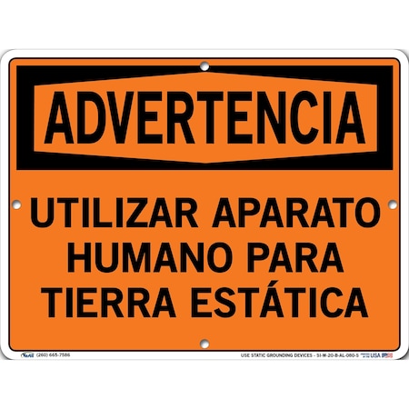Vestil SI-W-20-B-AL-080-S USE STATIC GROUNDING DEVICES/UTILIZAR APARATO HUMANO PARA TIERRA ESTÁTICA Warning Sign, Aluminum, 0.080" Overall Size, 12.5" W x 9.5" H