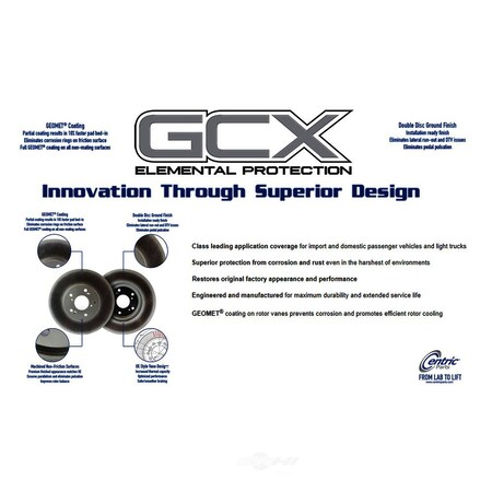 - GCX rotors feature partial Elemental Protection GEOMET coating on the friction surface that results in 10 percent faster pad bed-in while eliminating corrosion rings, as well as full Elemental Protection GEOMET coating on all non-mating surfaces to inhibit rust formation