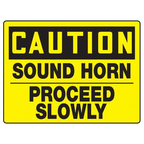 - Caution Sound Horn - Proceed Slowly safety sign printed in OSHA-compliant colors