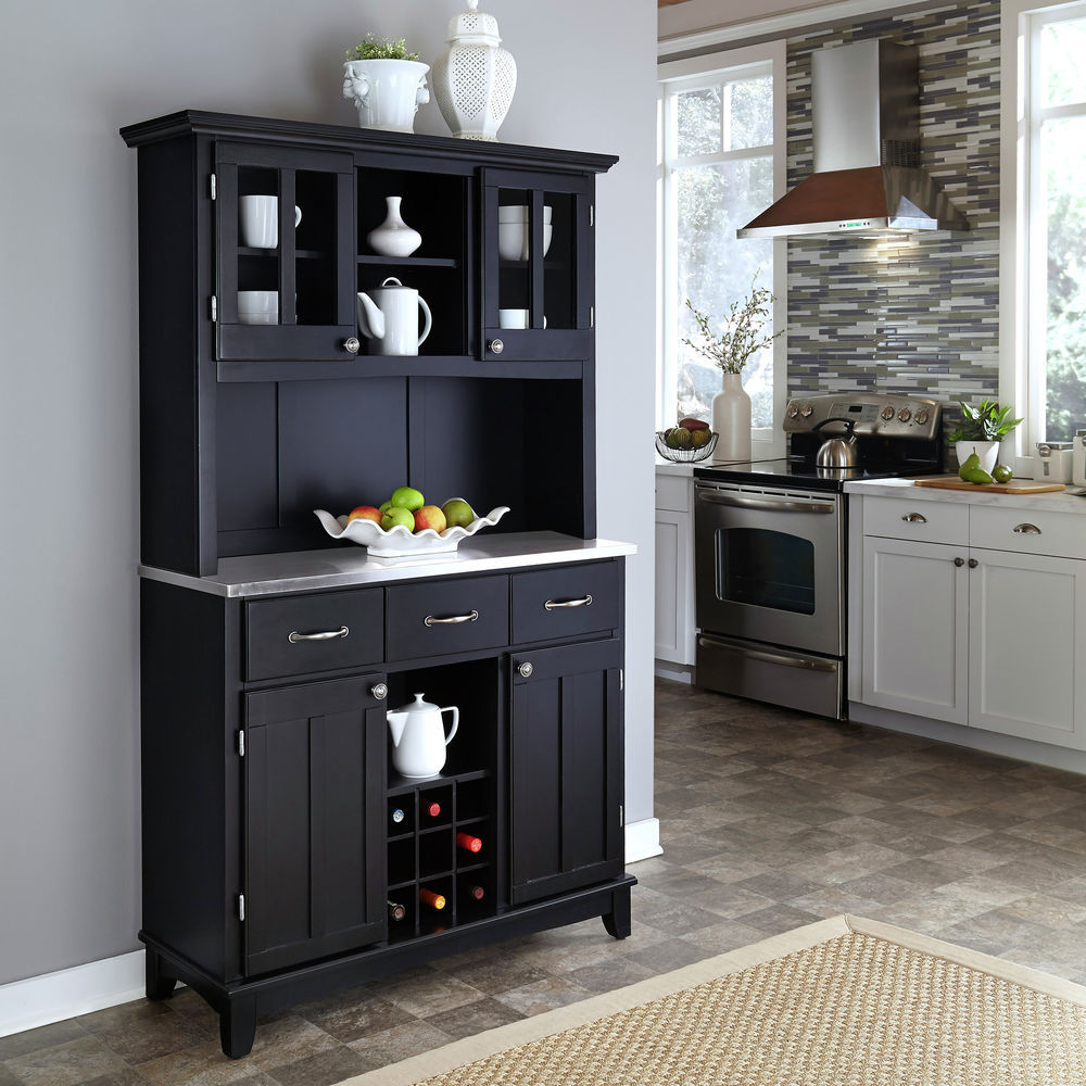 Stainless Steel Top On Black Server And Two Door Hutch Large