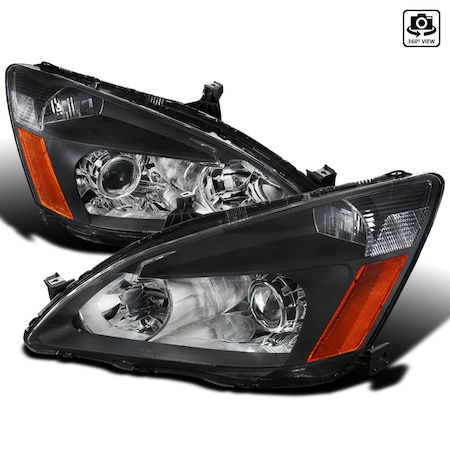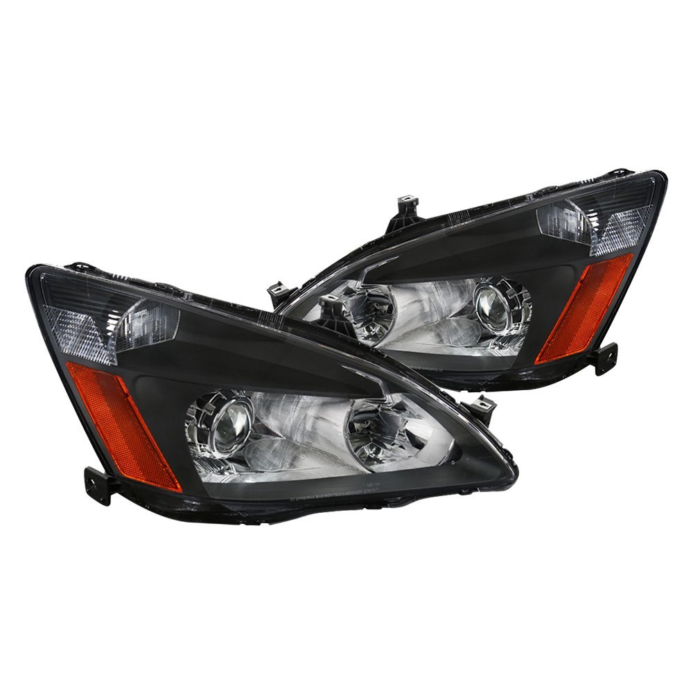 Spec-D Retro Style Projector Headlights w/ Amber Reflectors (Matte Black Housing/Clear Lens) Honda Accord 2003-2007 | 2LHP-ACD03JM-RS