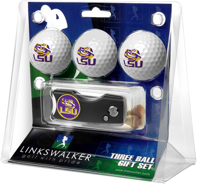 LinksWalker LW-CO3-LST-3PKS LSU Tigers-Spring Action Divot Tool 3 Ball Gift Pack