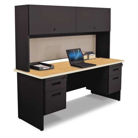 Pronto Marvel Office Desk with Two Pedestals - 72" Wx24 Dx29 H - Black Desk/Oak Top/Chalk Tack Board - Black