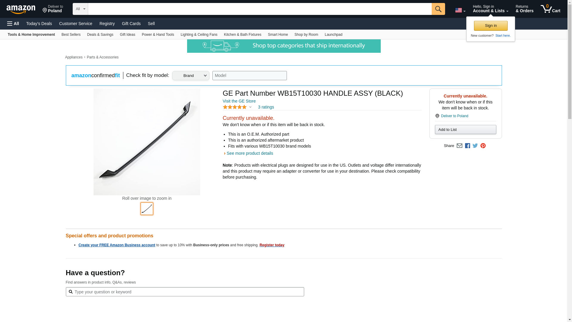 GE Part Number WB15T10030 HANDLE ASSY (BLACK)