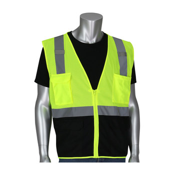 PIP ANSI Type R Class 2 Five Pocket Value Mesh Vest with Black Bottom Front 302-0710B Hi-Vis Yellow S