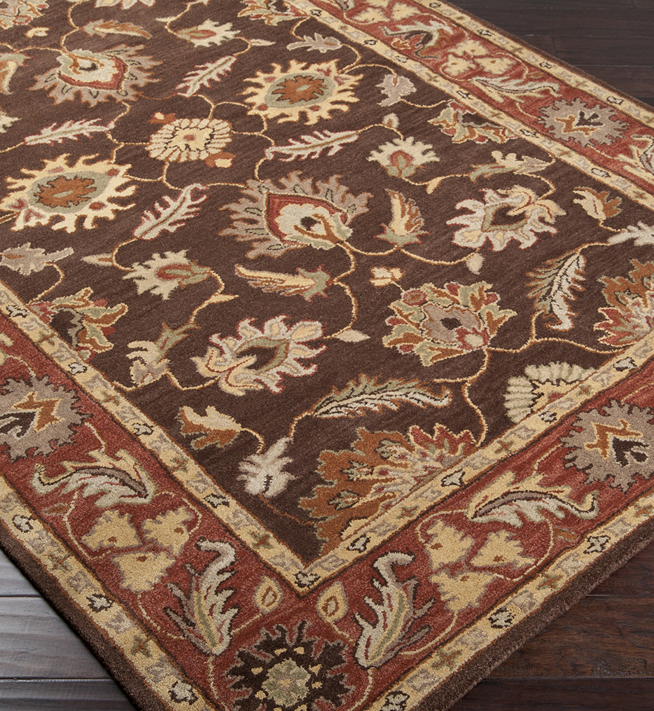 Surya's best selling creations have been infused with possibilities as the Caesar collection takes on new life. Designer color combinations including deep browns, charcoal gray, and muted red make these time-honored pieces suitable for any interior. Hand tufted in India of 1% wool, each rug is available in over 2 sizes, and in a variety of styles such as round, square, oval and mansion-sized.
