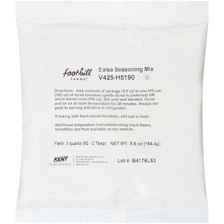 As an Amazon Associate, we earn from qualifying purchases. Foothill Farms Foothill Farms . V425-H5190 Gallery Attributes Brand name, Manufacturer name, Manufacturer, Extra Product NameFoothill Farms Attribute00, countryOfOriginUnited States AttributeKey00Country of Origin (subject to change) DimensionUnitinch GraingerSku444796 WeightUnitlbs atoms12 extendedLead3 jsonUrlData924526ffbdad25e5923b moq, multiple, tierMinQty11 MPNV425-H5190 qtyInStock, qtyInStockOverride0 qtySourceqtyInStockOverride SKUG5953207 tierPrice159.99 urlhttps://www.zoro.com/foothill-farms-no-msg-gluten-free-add-tomatoes-salsa-sauce-mix-58-oz-pk12-v425-h5190/i/G5953207/ Distributor offers SellerSKUMOQIn stockMultiplePrices ZoroG5953207111 @ $59.99