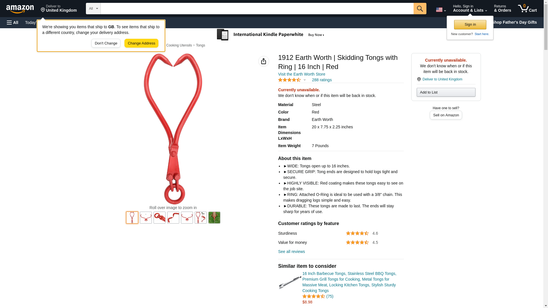 1912 Earth Worth | Skidding Tongs with Ring | 16 Inch | Red