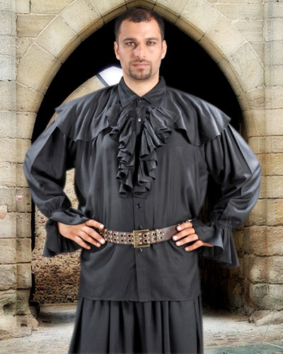 The Pirate Dressing C1091 Half Cape Medieval Shirt, Black - Extra Large