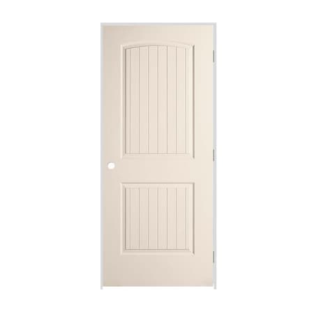28"x80"x1-3/8" Primed 2-Panel Arch Top V-Groove Santa Fe Molded Hollow Core 7-1/4" LH Prehung Door