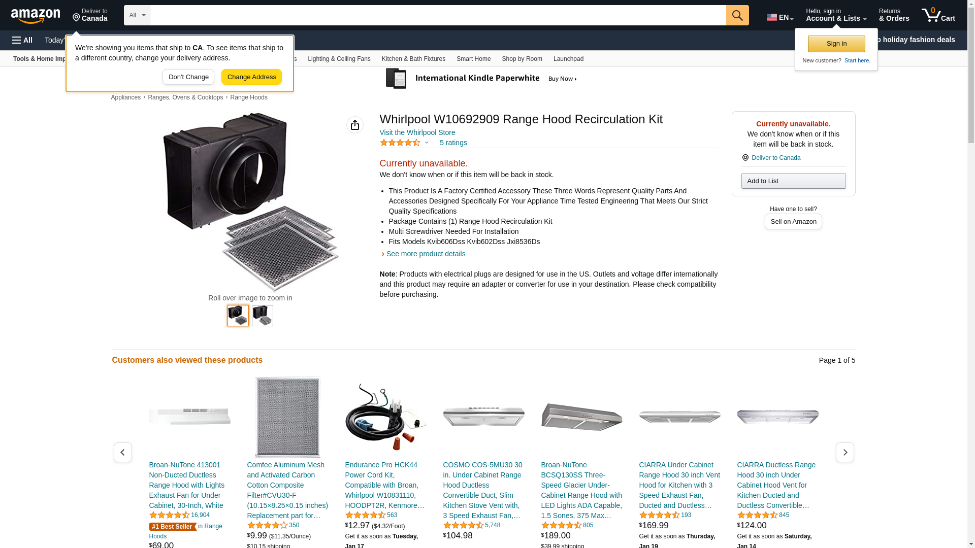 Whirlpool W10692909 Range Hood Recirculation Kit