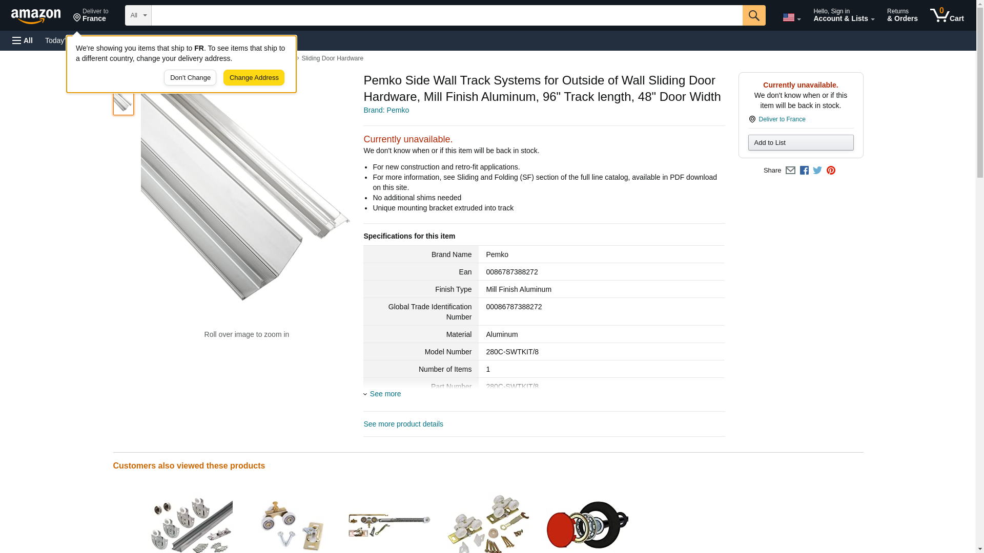 Pemko Side Wall Track Systems for Outside of Wall Sliding Door Hardware, Mill Finish Aluminum, 96" Track length, 48" Door Width