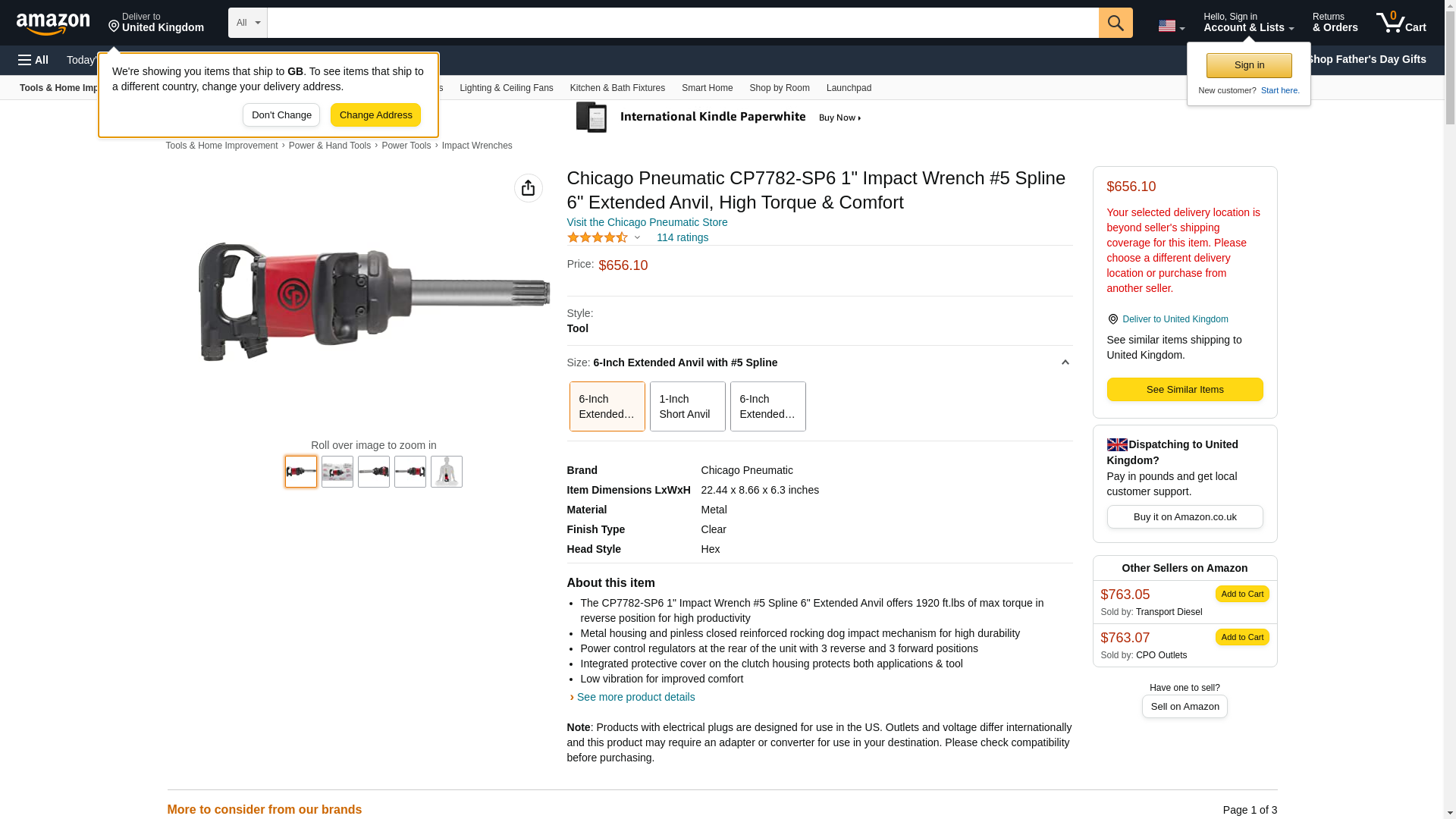 - The CP7782-SP6 1" Impact Wrench #5 Spline 6" Extended Anvil offers 1920 ft.lbs of max torque in reverse position for high productivity