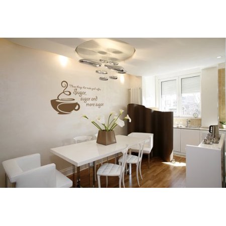 Three Things That Makes Good Coffee: Sugar, Sugar and More Sugar Wall Decal - wall decal, sticker, quotes and sayings - W5082 - Dark green, 20in x 10in