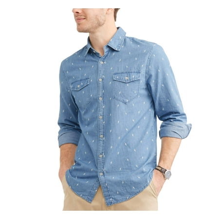 <br /> <b>Lazer Men's Printed Chambray Long Sleeve Woven Shirt:</b> <ul> <li>100% cotton </li> <li>Button-down shirt </li> <li>Chambray fabrication </li> <li>All-over printed lightning bolt pattern </li> <li>Full-button front closure </li> <li>Long sleeves with button cuffs </li> <li>Foldover collar </li> <li>Two chest button pockets </li> <li>Shirttail hem </li> <li>Available in denim chambray </li> <li>Machine wash cold with like colors, gentle cycle, only non-chlorine bleach if needed, tumble dry low, cool iron if needed</li> </ul><p>Country of Origin: Imported