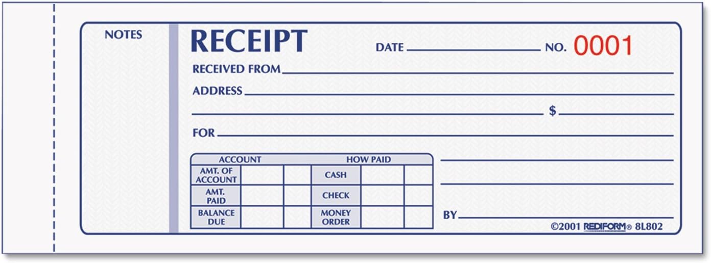 Rediform-Blueline 8L802 2-3/4" X 7" Carbonless Triplicate Money Receipt Book