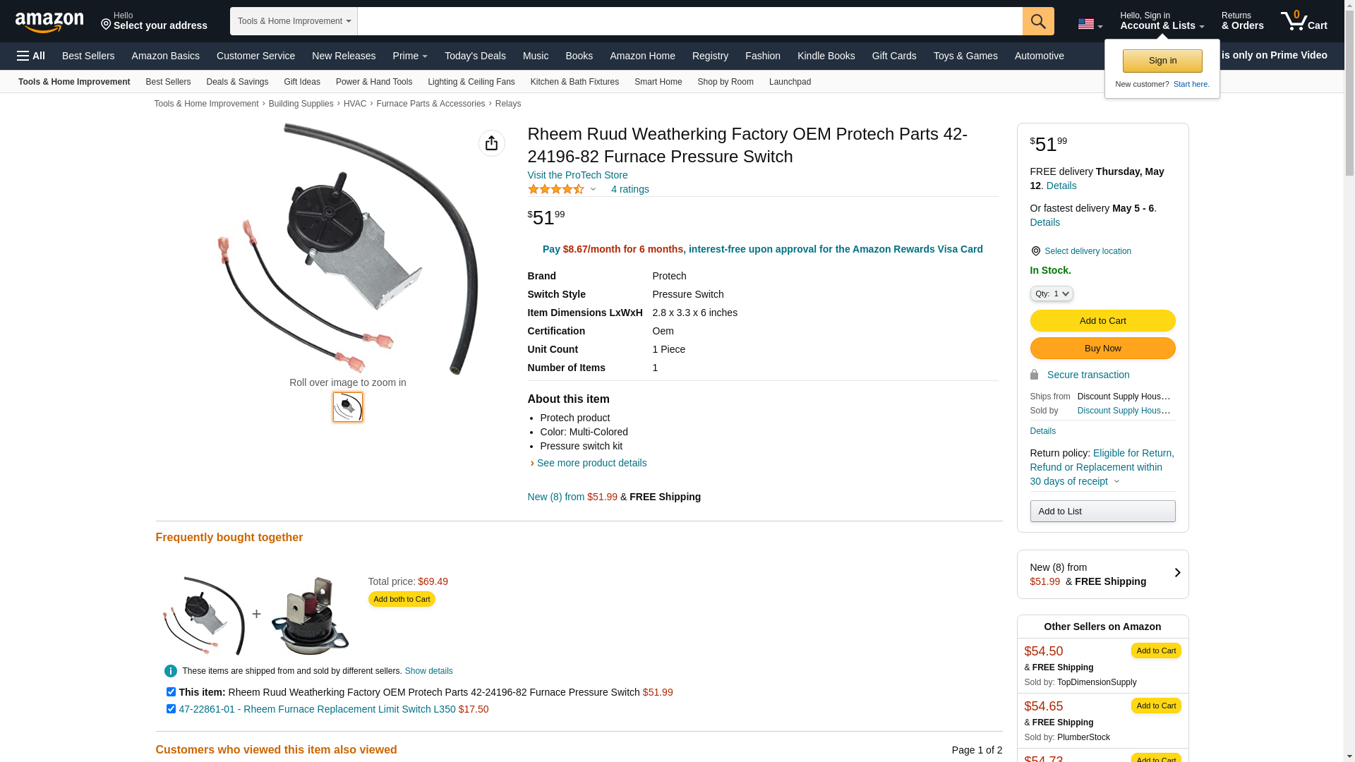 Rheem Ruud Weatherking Factory OEM Protech Parts 42-24196-82 Furnace Pressure Switch