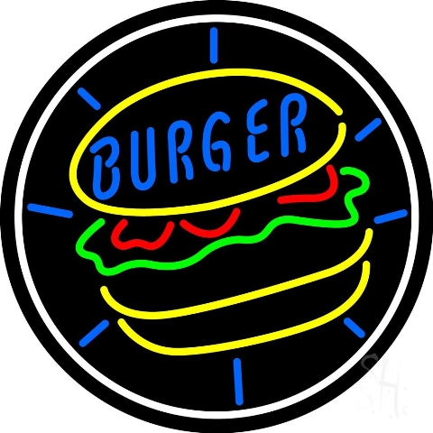 Sign Store N105-4158 24 x 3 x 24 in. Burger Circle Neon Sign - Red, Yellow, Green, Blue And White