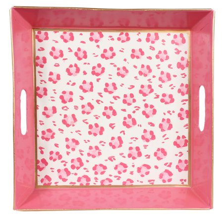 EZK2290 <br /> <b>Features</b> <br /> <ul> <li>Color: Pink and white</li> <li>Hand painted</li> <li>Recycled metal</li> <li>Lead free paint</li> <li>Clean with damp cloth</li> <li>Shape: Square</li> <li>Design: Accent Tray</li> <li>Material: Metal</li> <li>Shape: Square</li> <li>Finish: Pink and white</li> </ul> <br /> <b>Dimensions</b> <br /> <ul> <li>Overall Width - Side to Side: 12"</li> <li>Overall Depth - Front to Back: 12"</li> <li>Overall Height - Top to Bottom: 2"</li> <li>Overall Product Weight: 2 lbs</li> </ul>