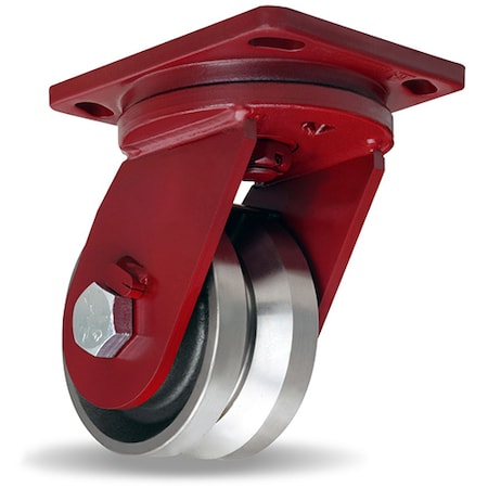 Enhanced Precision Super Duty Swivel Caster, 6" x 3" Forged Steel V-Groove Wheels