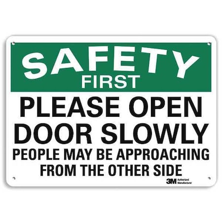SmartSign by Lyle U7-1225-RA_14X10 "SAFETY FIRST PLEASE OPEN DOOR SLOWLY PEOPLE MAY BE APPROCHING FROM THE OTHER SIDE" Reflective Recycled Aluminum Sign, 14" x 10"