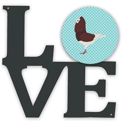 Carolines Treasures BB8122WALV 11.5 x 11.75 in. Capuchin Red Pigeon Blue Check Metal Artwork Love Wall Decor