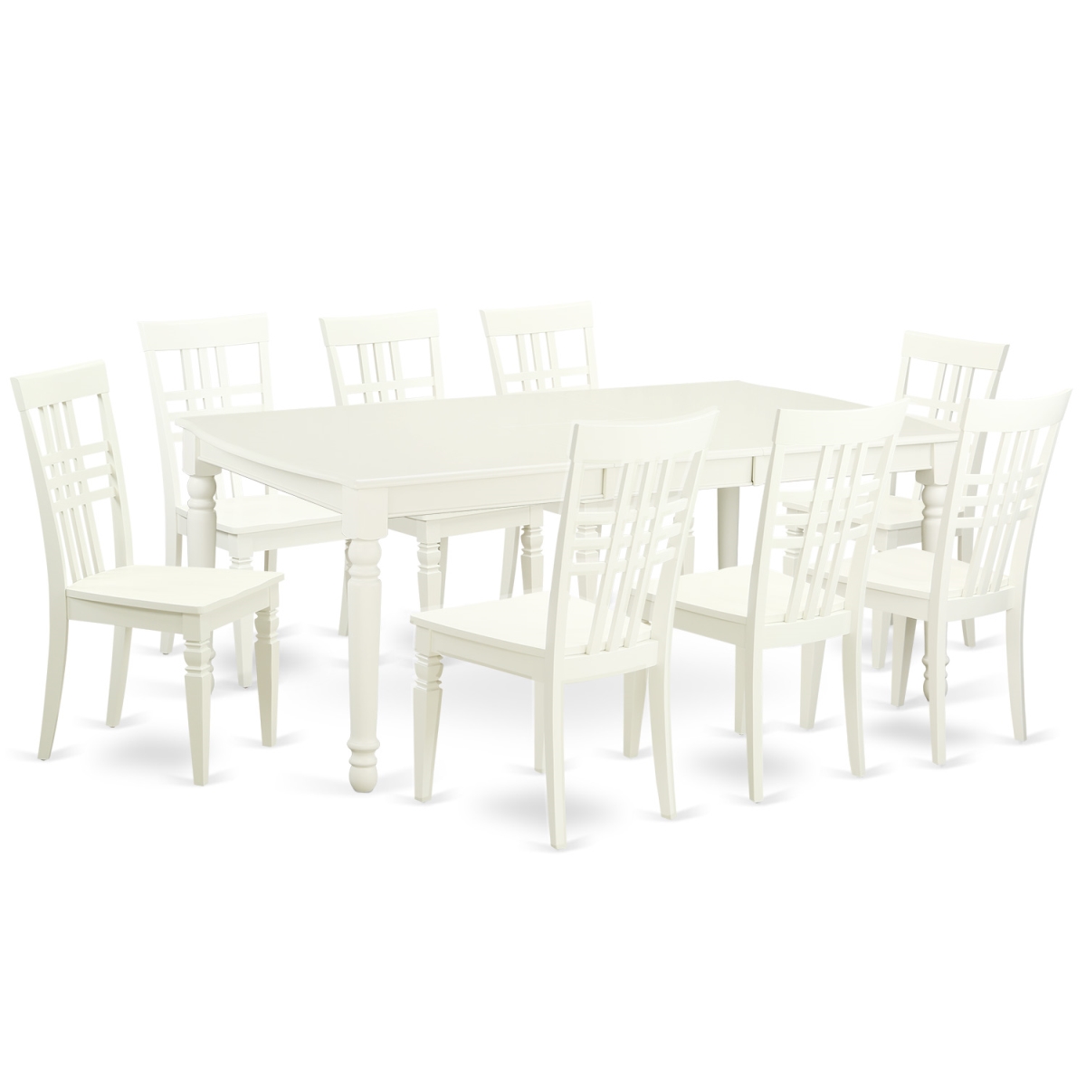 East West Furniture DOLG9-LWH-W Kitchen Tables & Chair Set with One Dover Dining Table & 8 Chairs, Linen White - 5 P