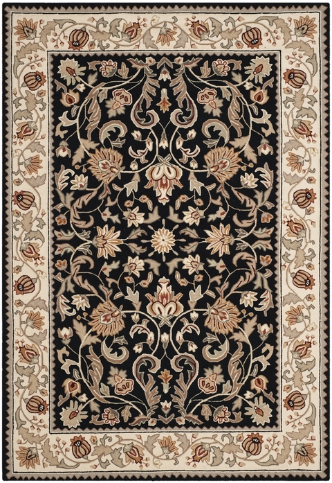 Safavieh EZC101B-24 2 ft. - 6 in. x 4 ft. Easy Care Hand Hooked Area Rug, Black & Ivory