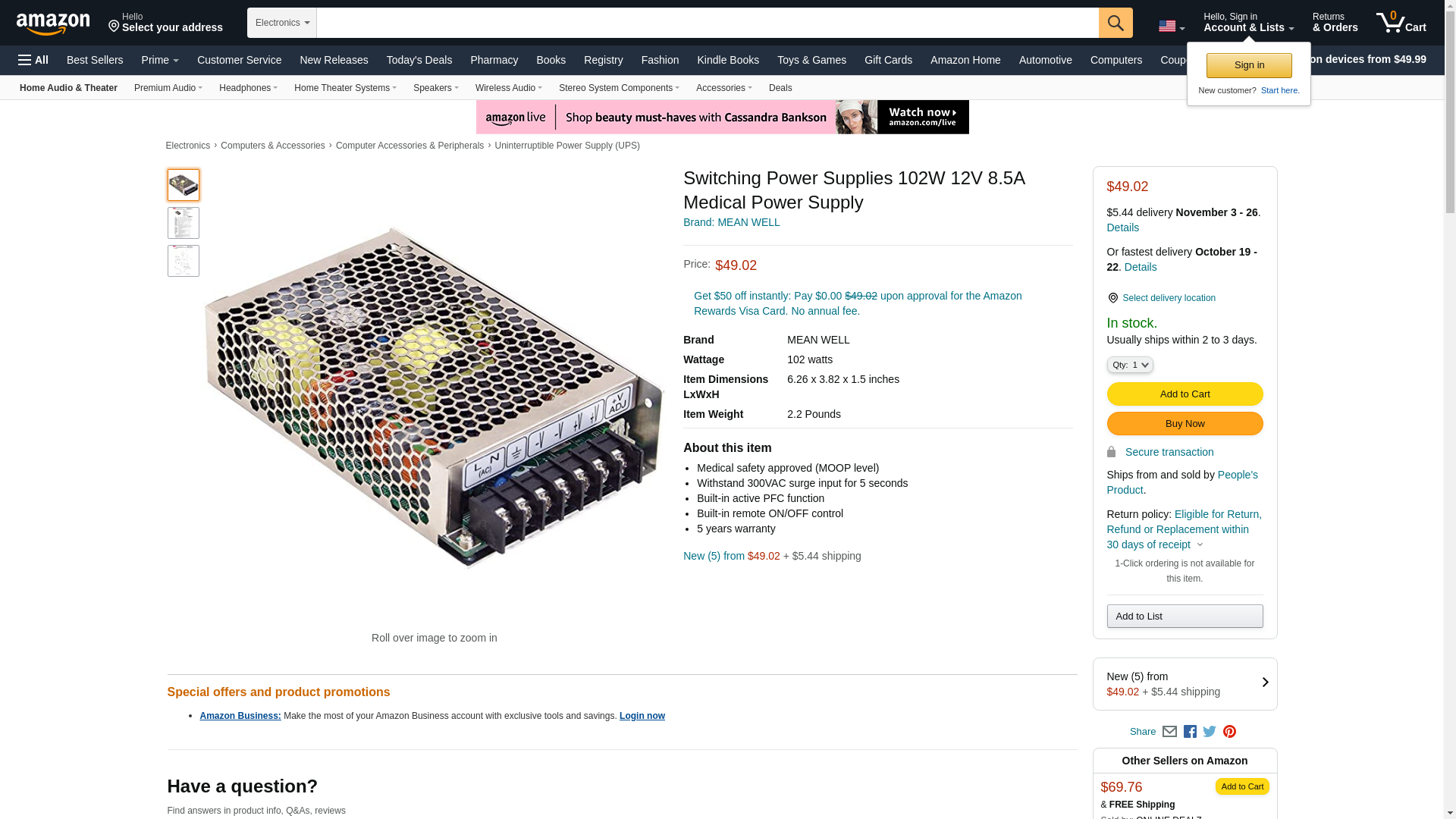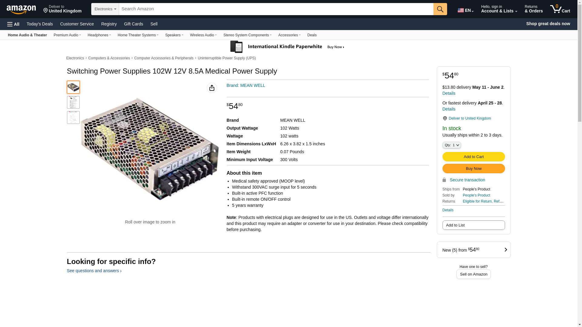 ![]() powersupplymall.com | MSP-100-12 | 1 | 572 | 1 | 1 @ $55.83 |