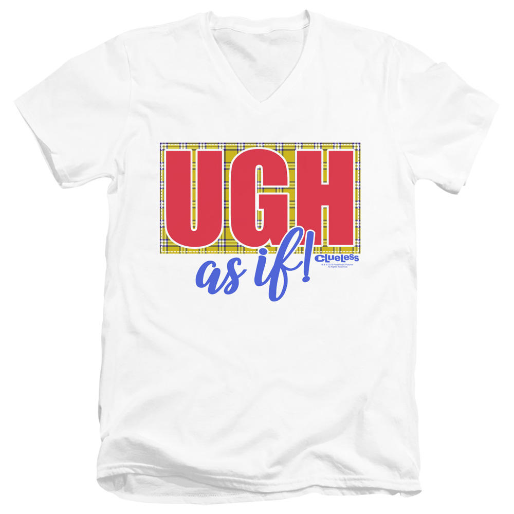 Trevco PAR713-AV-4 Clueless & Ugh As If-Short Sleeve Adult V-Neck 30 by 1 T-Shirt, White - Extra Large