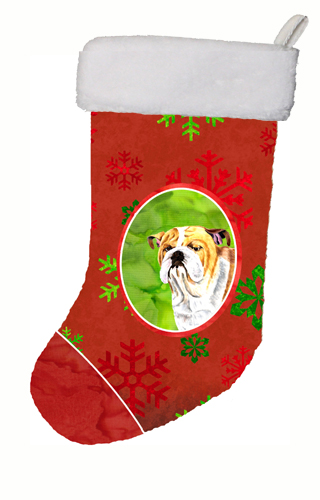 Caroline's Treasures SC9414-CS Bulldog English Red and Green Snowflakes Holiday Christmas Stocking, Large, Multicolor