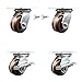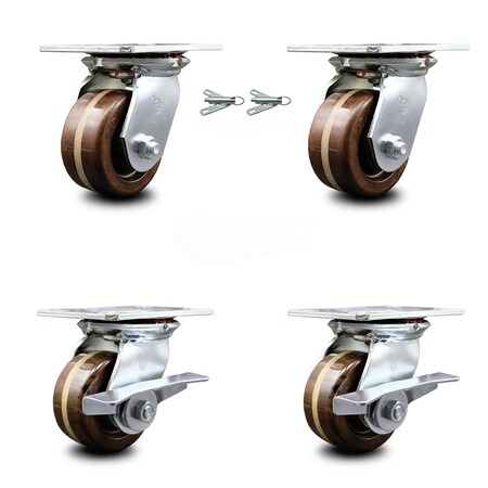 Heavy Duty Large Top Plate High Temperature Phenolic Swivel Caster Set of 4 w/4" x 2" Brown Wheels-Includes 2 Swivel with Bolt on Swvl Lcks&2 Swvl with Brakes-3200lbs Total Cpty - Service Caster Brand