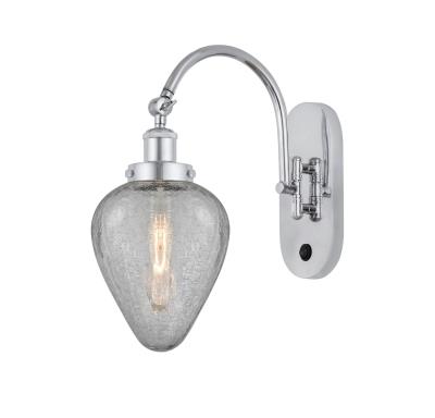 This 1 light Sconce from the Franklin Restoration Geneseo collection by Innovations Lighting will enhance your home with a perfect mix of form and function. The features include a Polished Chrome finish applied by experts. Product Features Include: Brand: Innovations Lighting, Collection: Franklin Restoration Geneseo, SKU: 918-1W-PC-G165, UPC: 729625070273, Category: Wall Sconce, Finish: Polished Chrome, Glass: Clear Crackled, Material: Steel/Cast Brass/Glass, Designer: Bruno Marashlian, Width: 6.50 in., Height: 15.50 in., Extension/Depth: 13.25 in., Backplate/Canopy Width: 4.50 in., Backplate/Canopy Length: 0.00 in., Backplate/Canopy Thickness: 0.75 in., Height from Center of Wall Opening: 2.25 in., Install Position: Reversible/Duo Mount, Weight: 3.75 lb., Warranty: 2 Year Finish, Lifetime Electrical, Bulbs Included: Yes, Bulb Category: Incandescent, Primary Bulb(s): 1 x 60.00 watts Medium Base ST64 Vintage, Color Temperature: 2200K, Color Rendering Index: 99.9000, Total Lumens: 220, Voltage: 120, Safety Rating: Damp Location