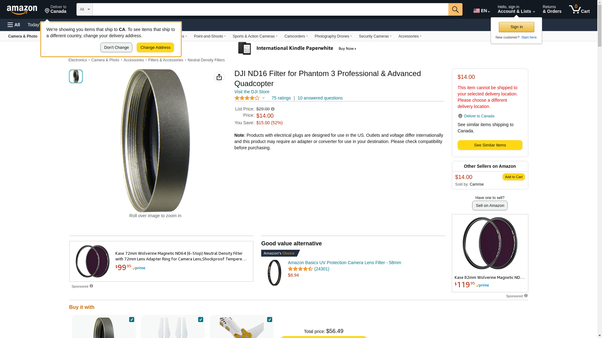 DJI ND16 Filter for Phantom 3 Professional & Advanced Quadcopter