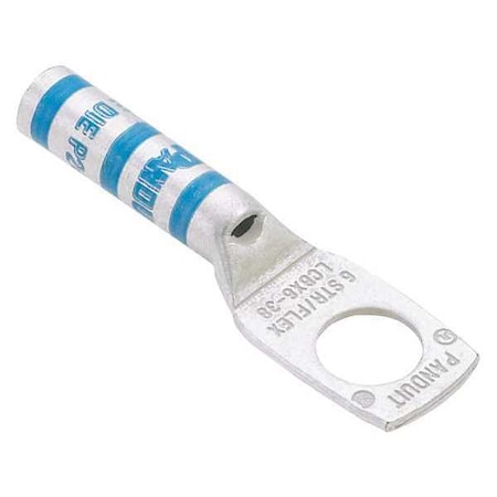 Panduit LCBX2/0-12-X Flex Conductor Lug, One Hole, Long Barrel With Window, 2/0 AWG Class G/H/I/K/M Conductor Size, 2/0 AWG Diesel Locomotive Conductor Size, 2/0 AWG Code Conductor Size, 1/2" Stud Hole Size, Black Color Code, 1-9/16" Wire Strip Length, 0.13" Tongue Thickness, 0.96" Tongue Width, 1.50" Neck Length, 2.96" Overall Length