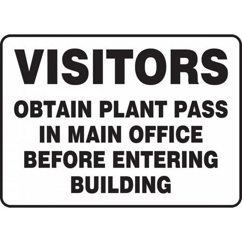 Accuform MADM922XF, 7" x 10" Dura-Fiberglass Sign:"Visitors Obtain Plant Pass in Main Office.", Pack of 12 pcs