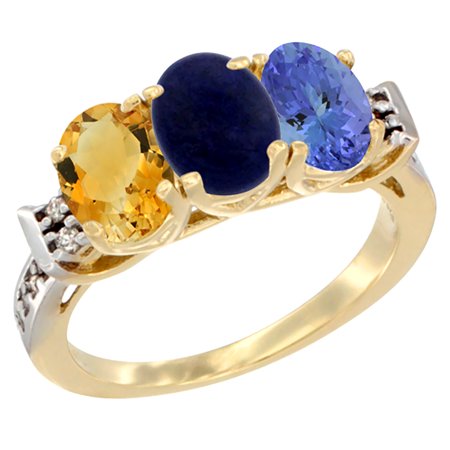 10K Yellow Gold Natural Citrine, Lapis & Tanzanite Ring 3-Stone Oval 7x5 mm Diamond Accent, sizes 5 - 10