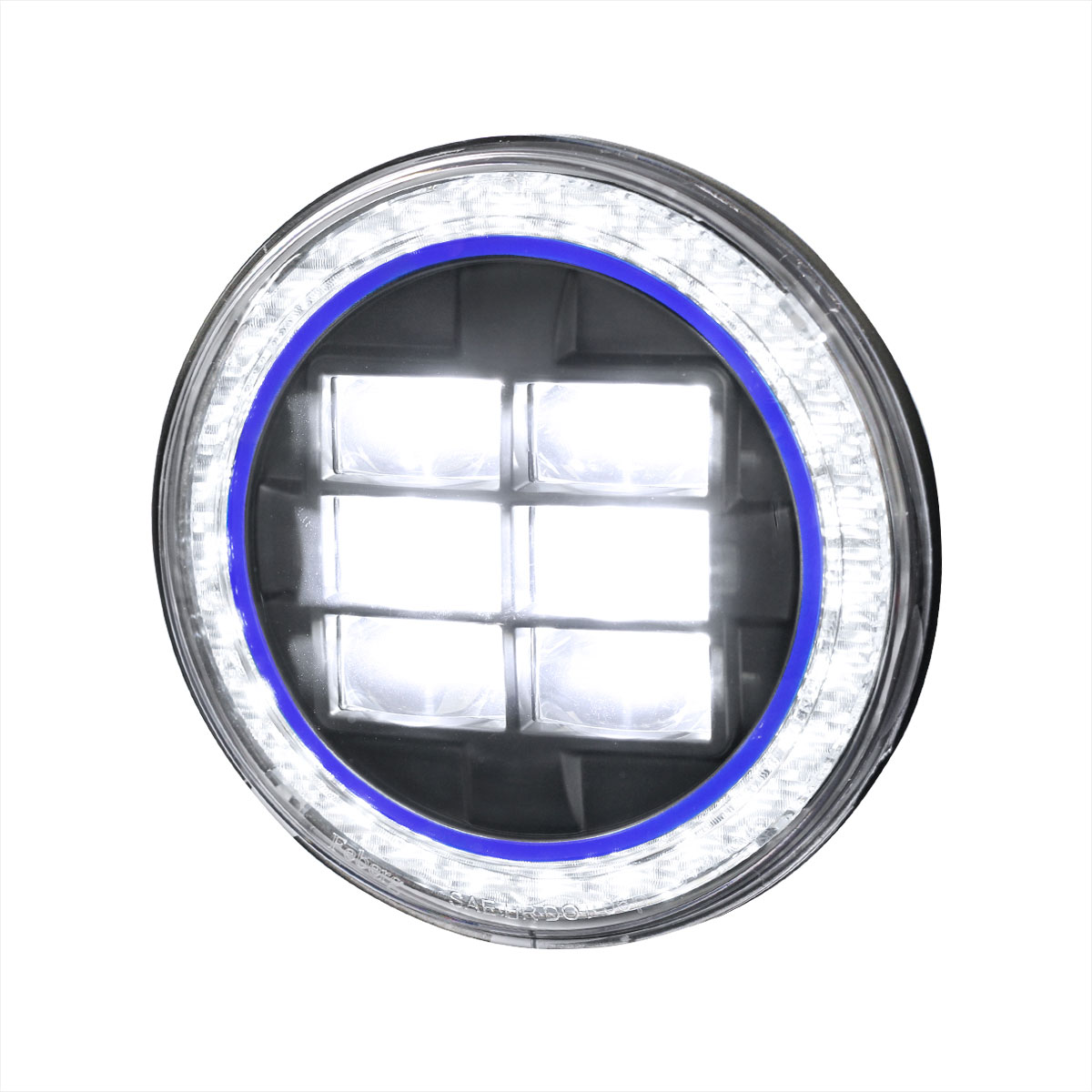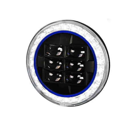 Spec-D Universal 7" Round Projector Headlight w/ LED Blue Rim Halo - 1PC (Matte Black Housing/Clear Lens) | LHP-7RNDJM-H-BL-RS