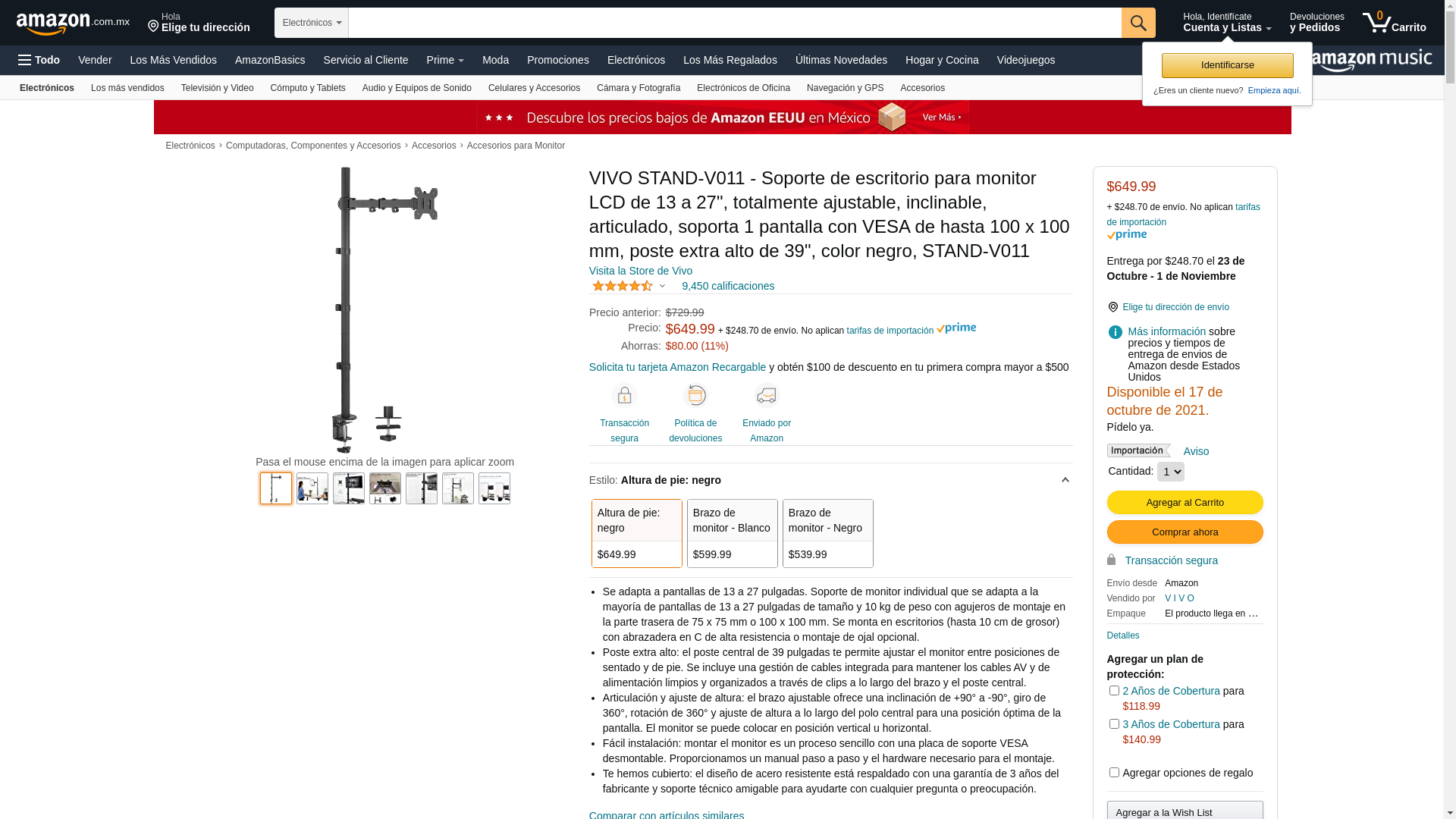 VIVO STAND-V011 SINGLE MONITOR EXTRA TALL DESK MOUNT, BLACK