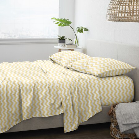 Premium Ultra Soft Arrow Pattern 4 Piece Bed Sheet Set, California King, Yellow