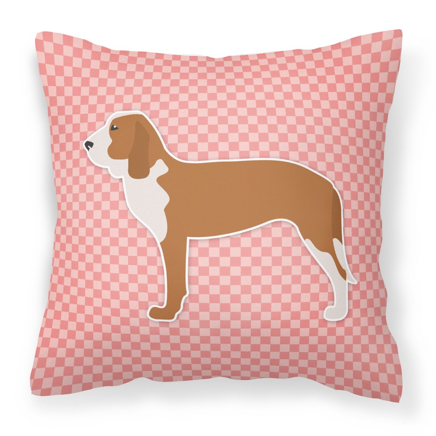 Carolines Treasures BB3591PW1414 Spanish Hound Checkerboard Pink Fabric Decorative Pillow