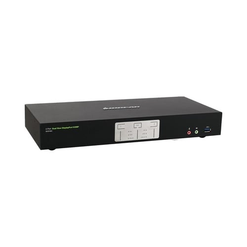 Enhance High-End Multi-Monitor Workstation Maximize your high-end dual DisplayPort workstations by connecting them to the 2-Port 4K Dual View Display Port KVMP. Experience Cinema 4K resolutions along with rich bass and 7.1 surround sound while switching between both computers and sharing two USB 3.0 peripherals with the push of a button.