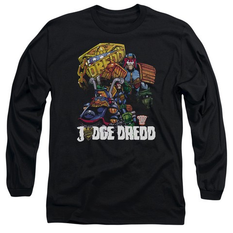 Trevco Judge Dredd-Bike And Badge Long Sleeve Adult 18-1 Tee, Black - 2X