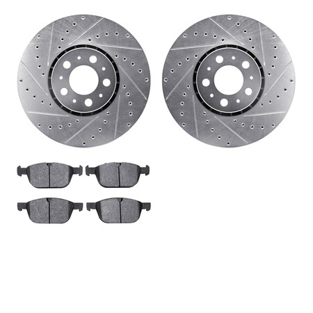 Dynamic Friction Company Front Brake Rotors-Drilled and Slotted-Silver with 3000 Series Ceramic Brake Pads 7302-27071